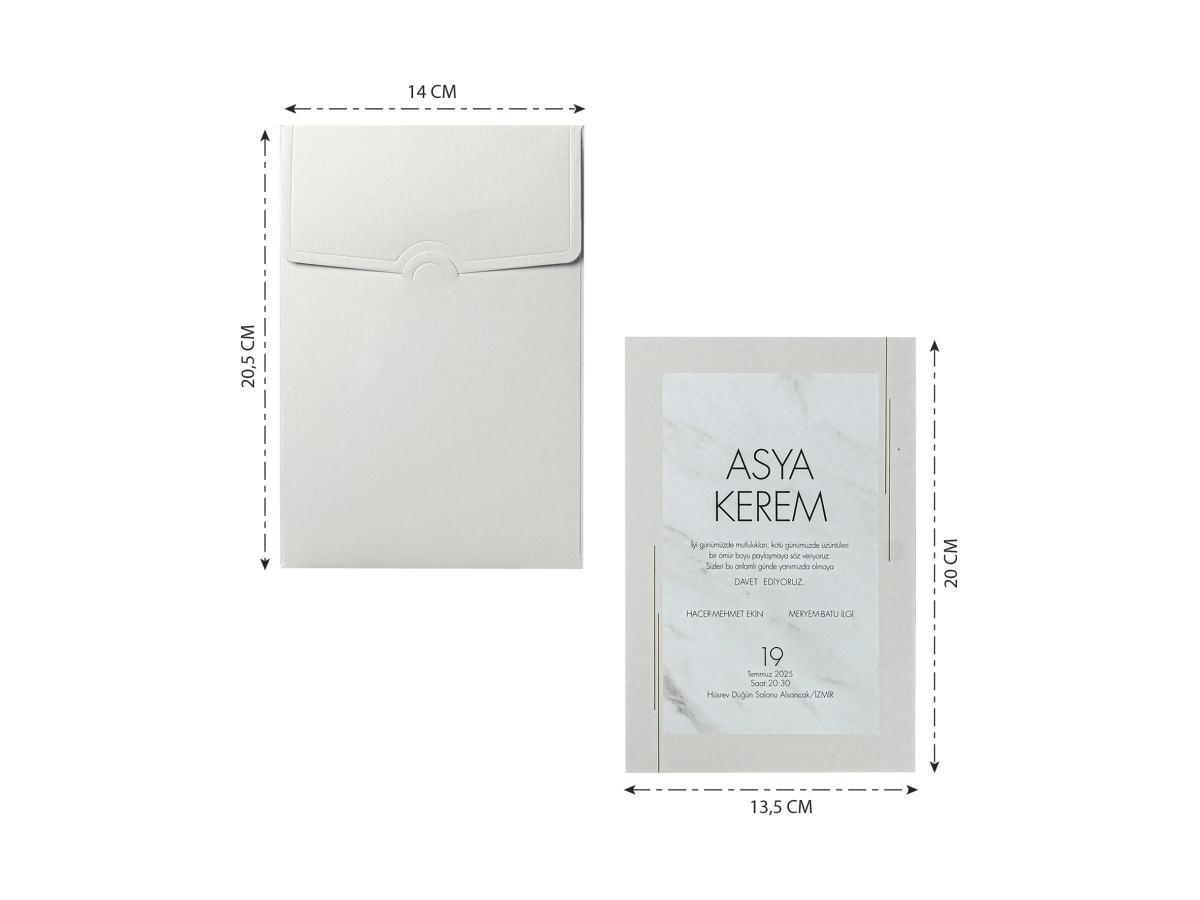 • Davetiyenin boyutları son resimde belirtilmiştir.