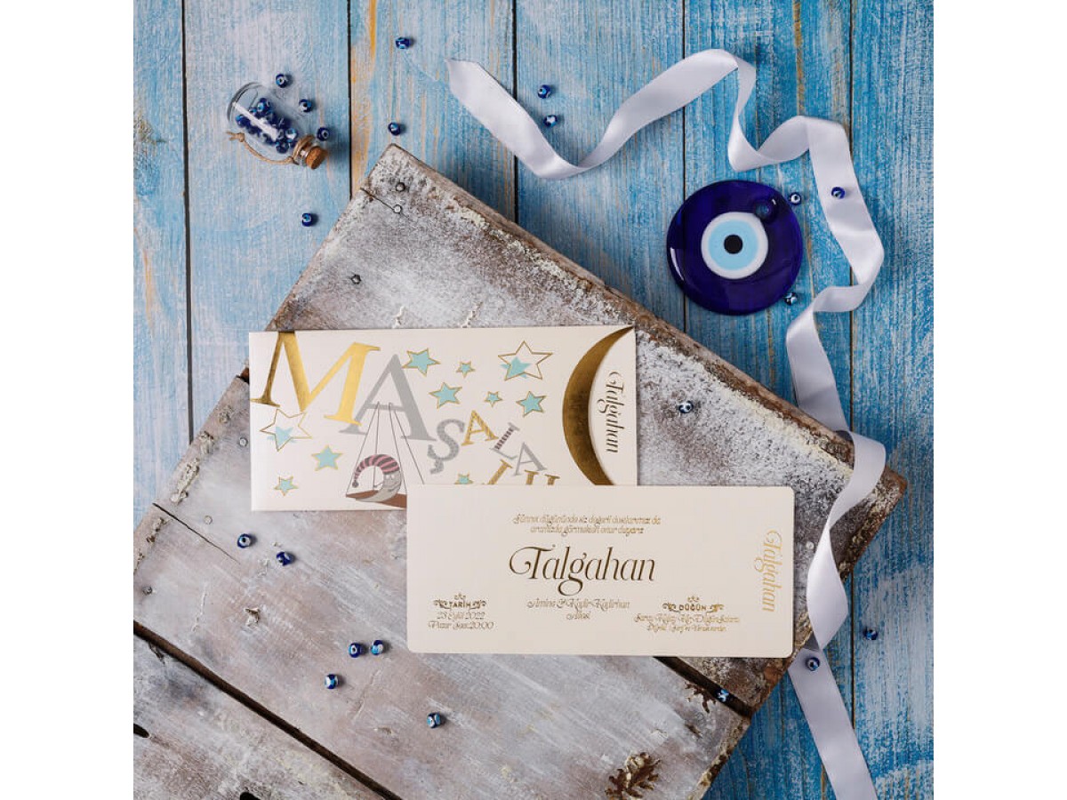 Davetiyenin zarfı krem rengi üzerinde ofset ve altın yaldız baskı mevcuttur. İç kısmı zarf ile aynı renk üzerinde altın yaldız baskı vardır.