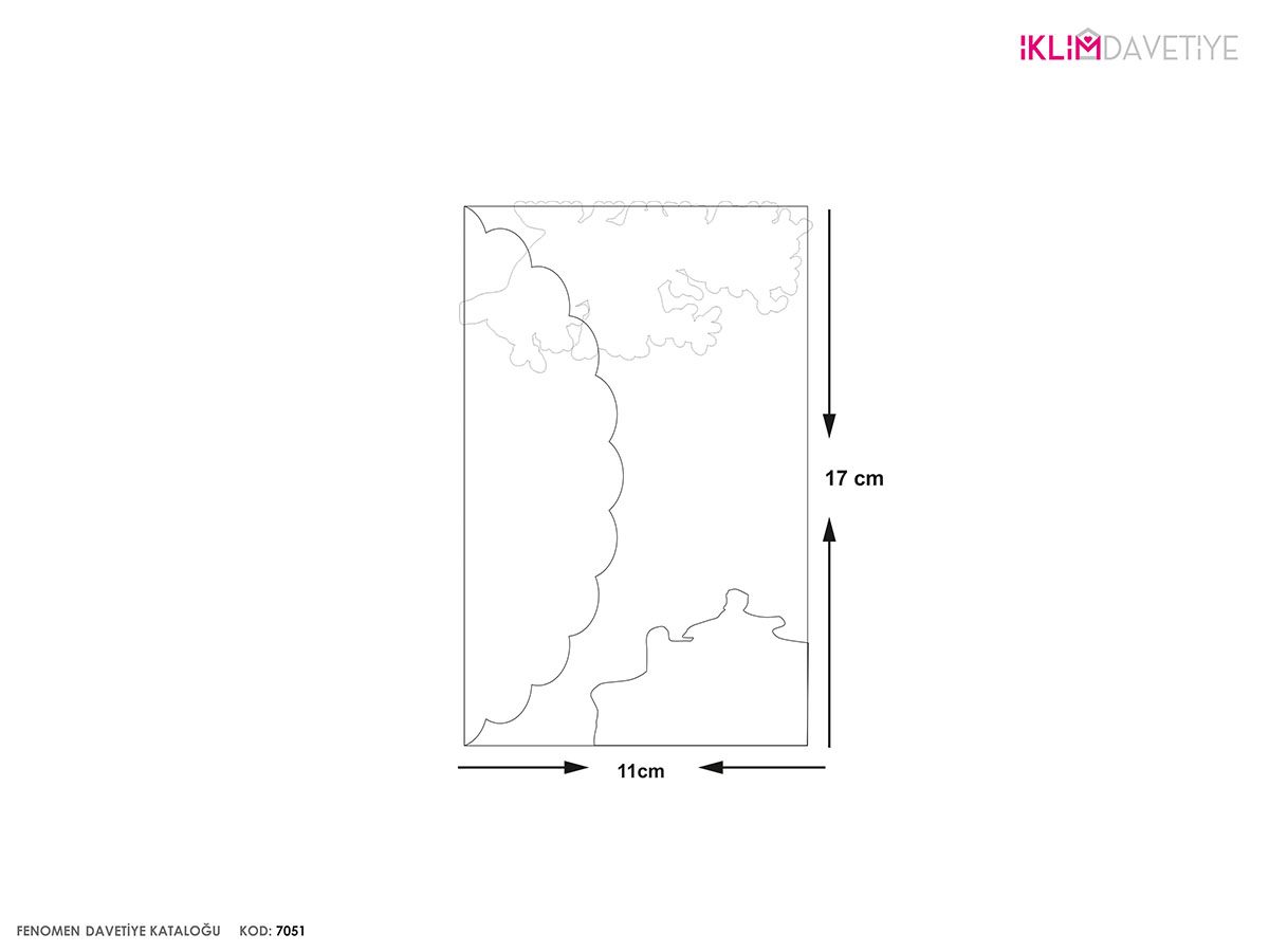 Davetiyenin boyutları son resimde belirtilmiştir.