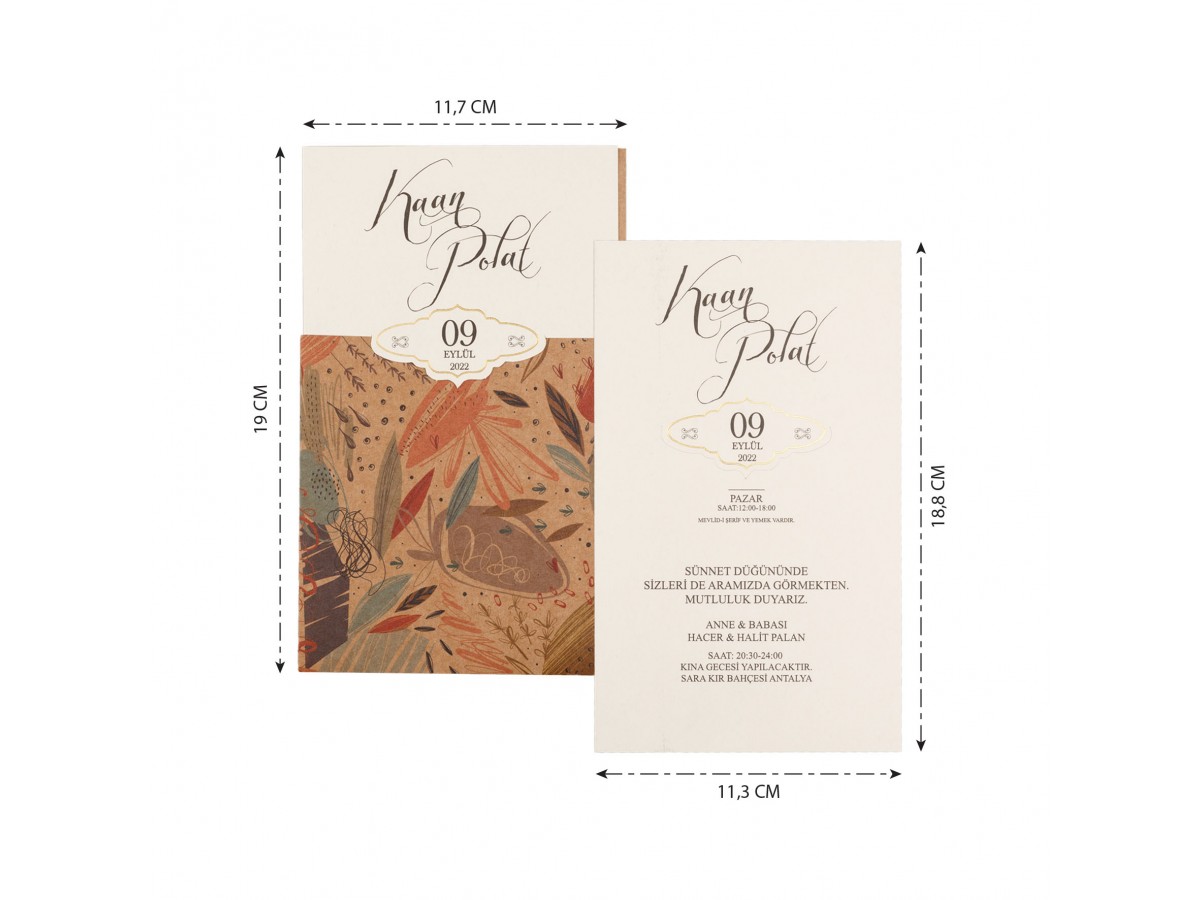 Davetiyenin boyutları son resimde belirtilmiştir.