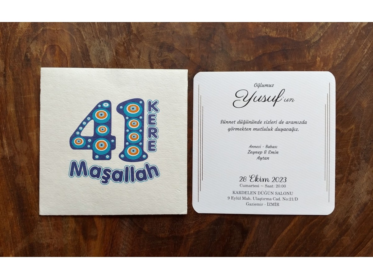 Davetiyenin boyutları son resimde belirtilmiştir.