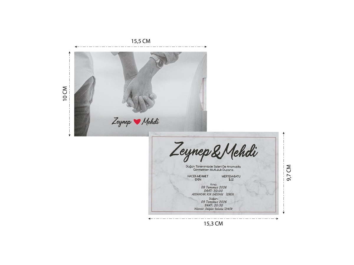 Davetiyenin boyutları son resimde belirtilmiştir.