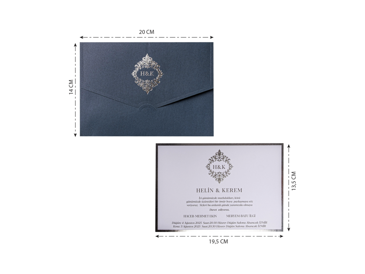 Davetiyenin boyutları son resimde belirtilmiştir.