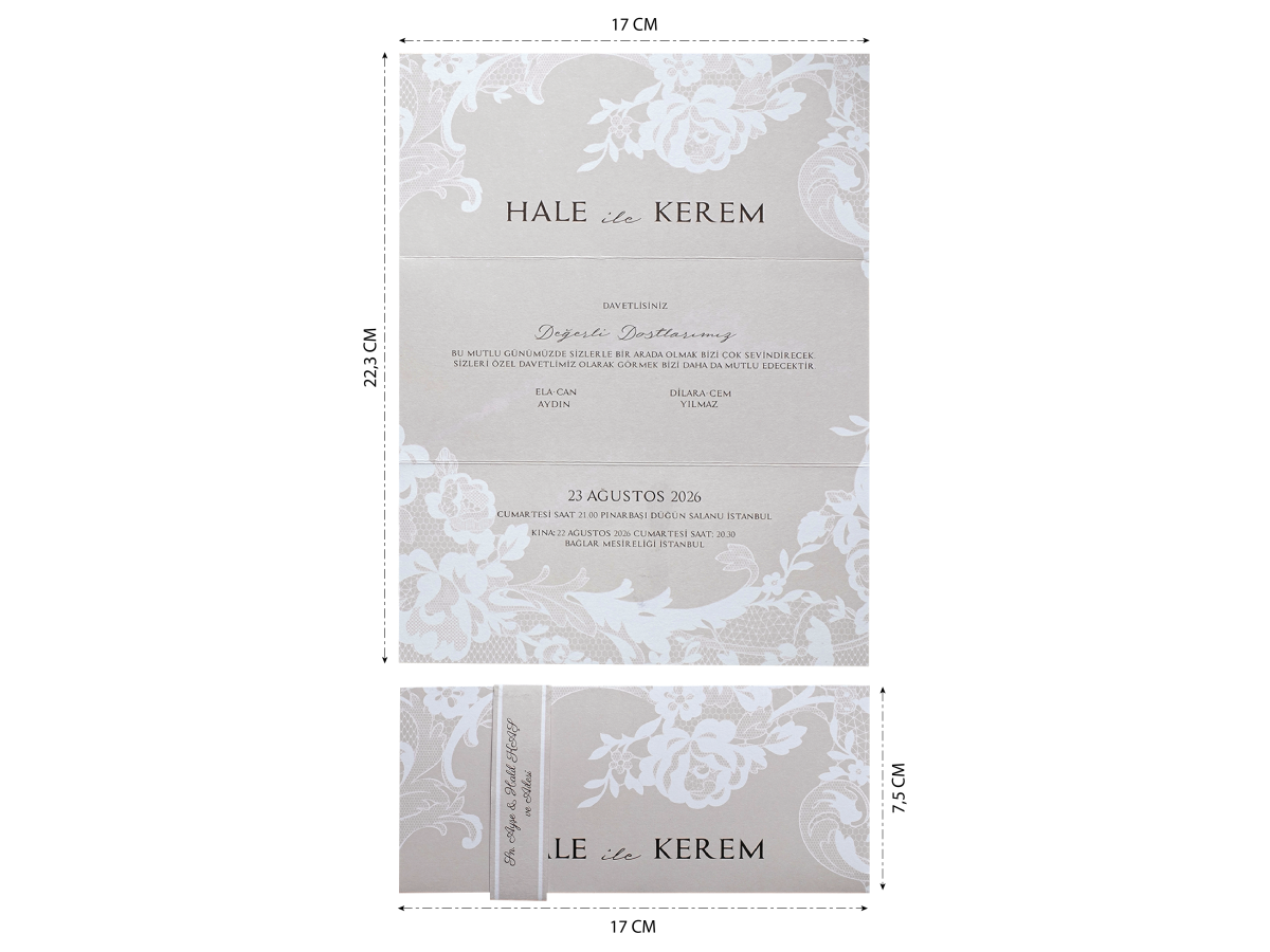 Davetiyenin boyutları son resimde belirtilmiştir.