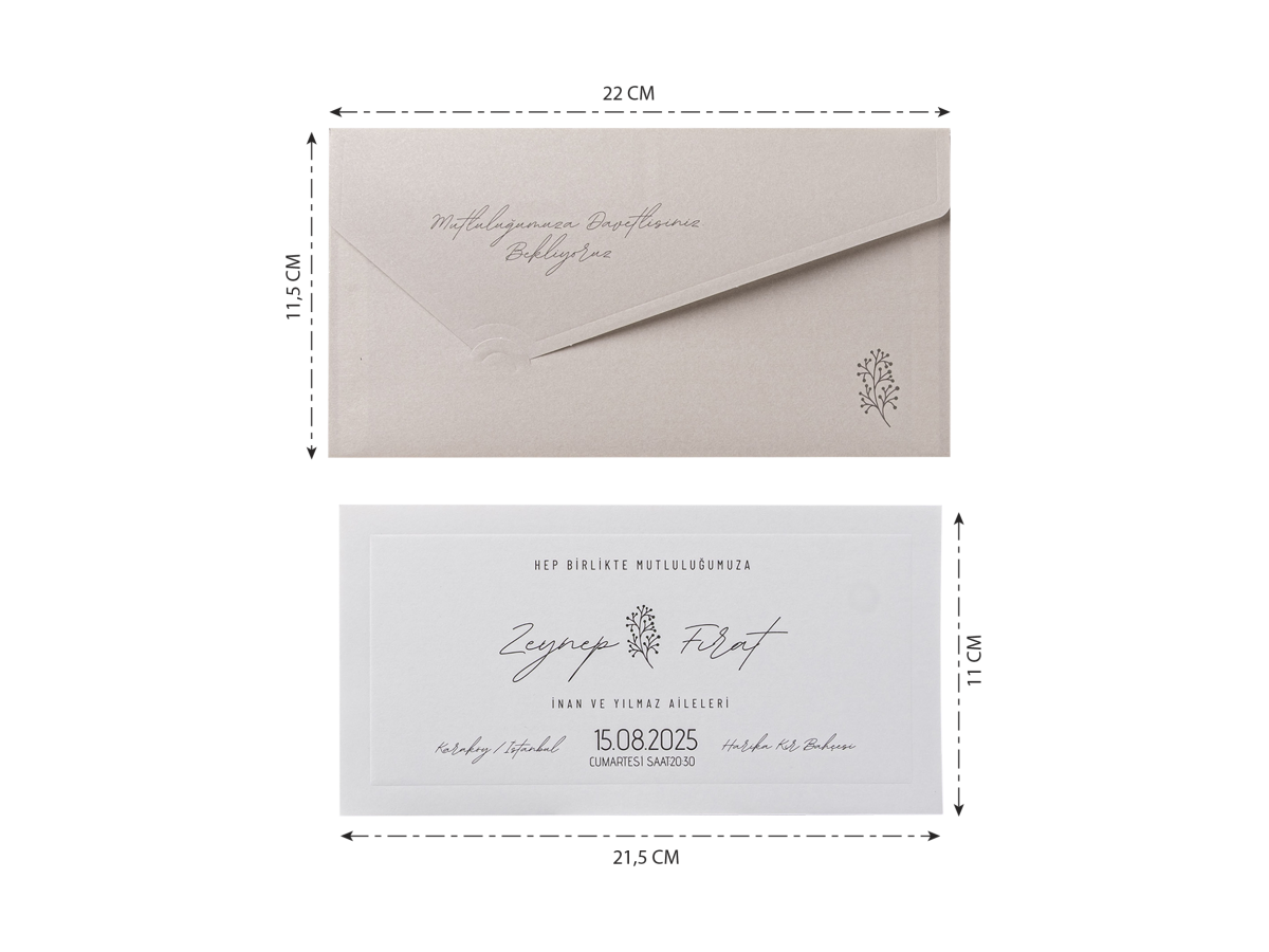 Davetiyenin boyutları son resimde belirtilmiştir.