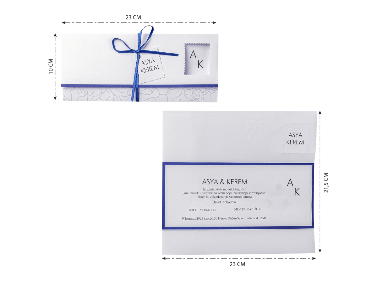 Davetiyenin boyutları son resimde belirtilmiştir.