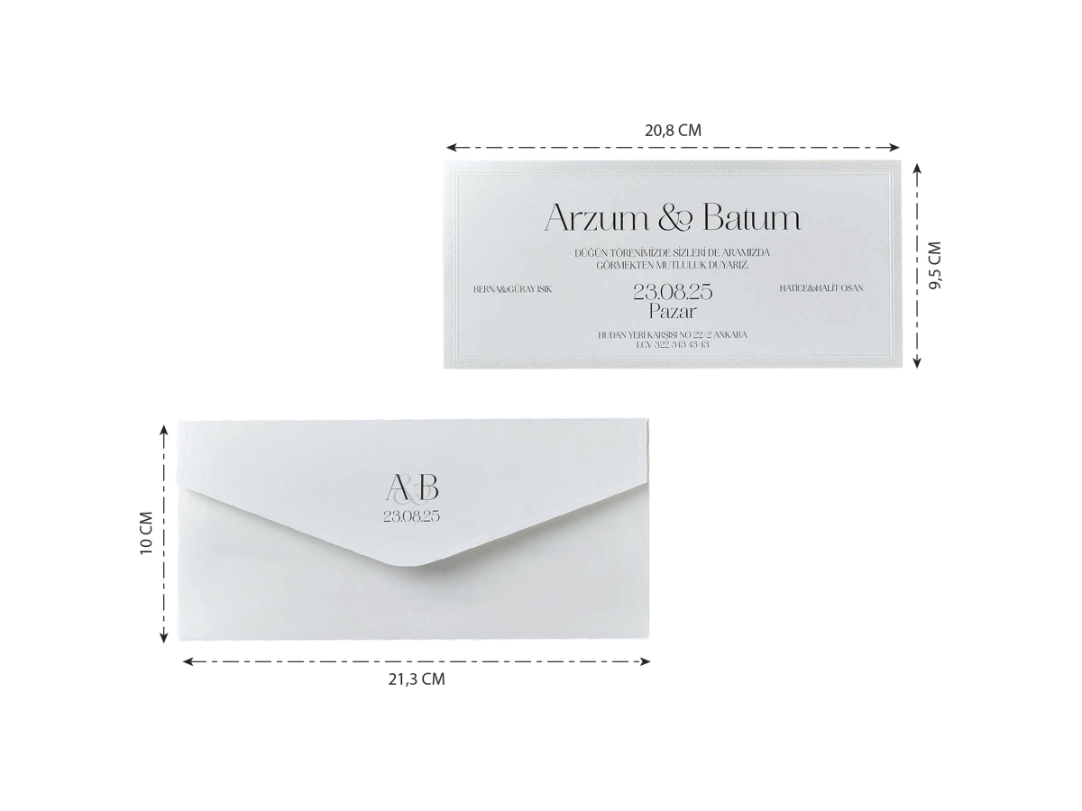 Davetiyenin boyutları son resimde belirtilmiştir.
