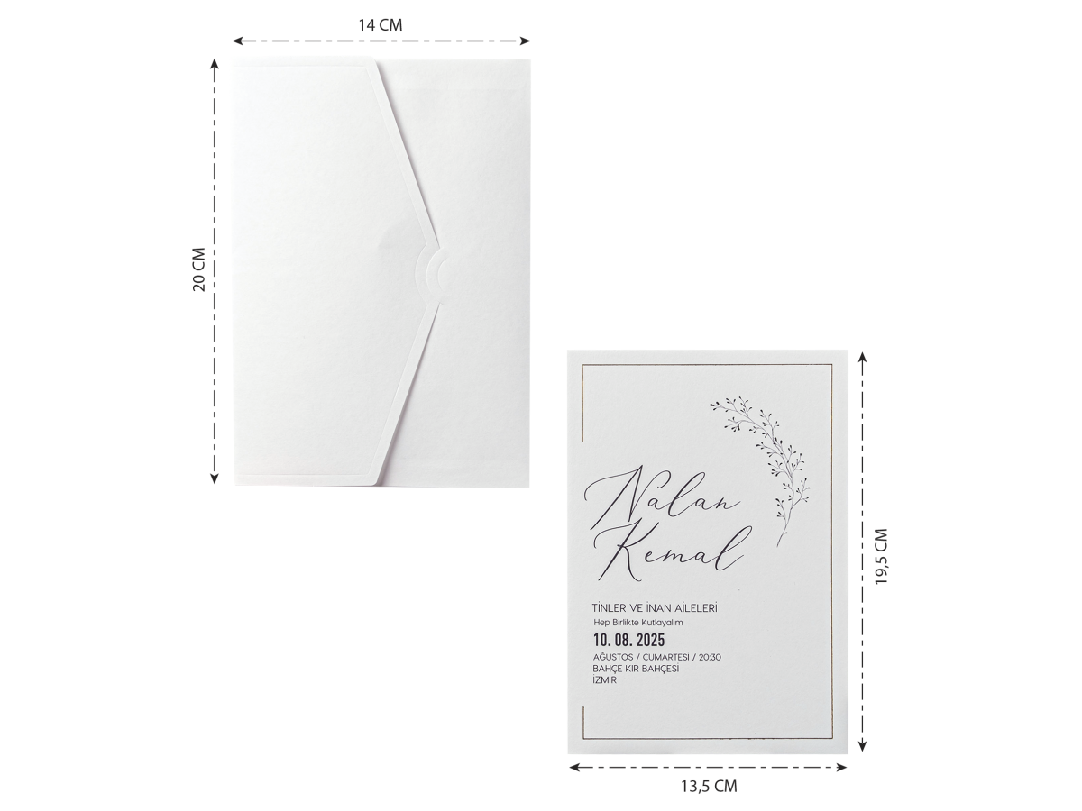 Davetiyenin boyutları son resimde belirtilmiştir.