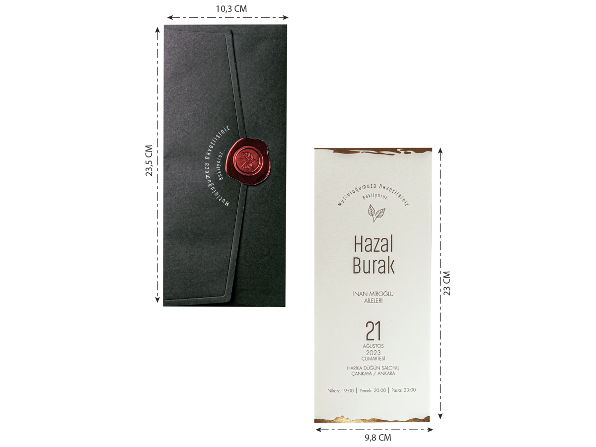 • Davetiyenin boyutları son resimde belirtilmiştir.