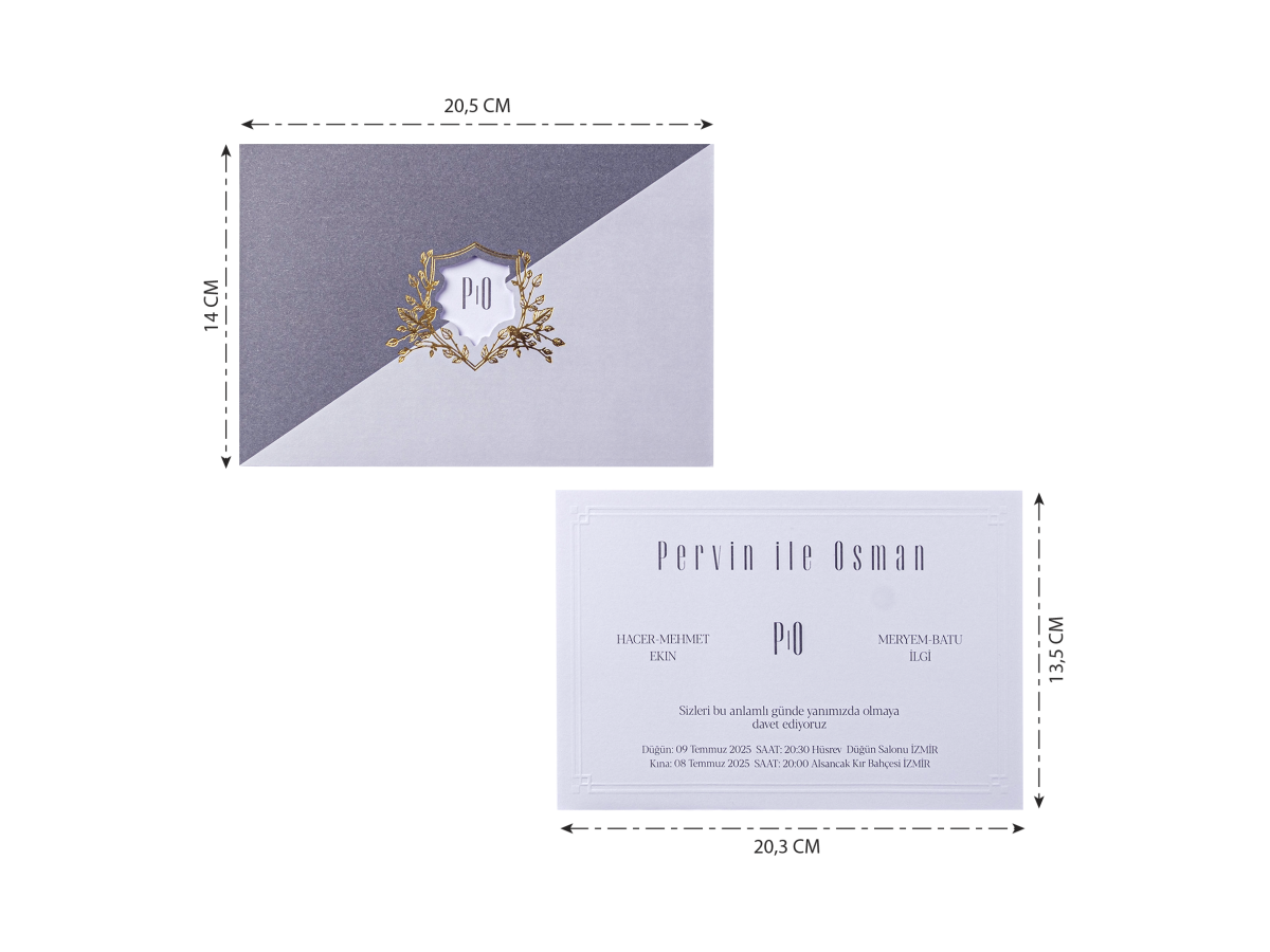 Davetiyenin boyutları son resimde belirtilmiştir.