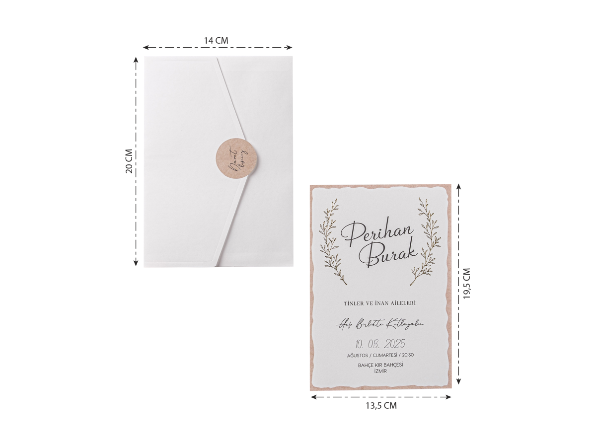 Davetiyenin boyutları son resimde belirtilmiştir.