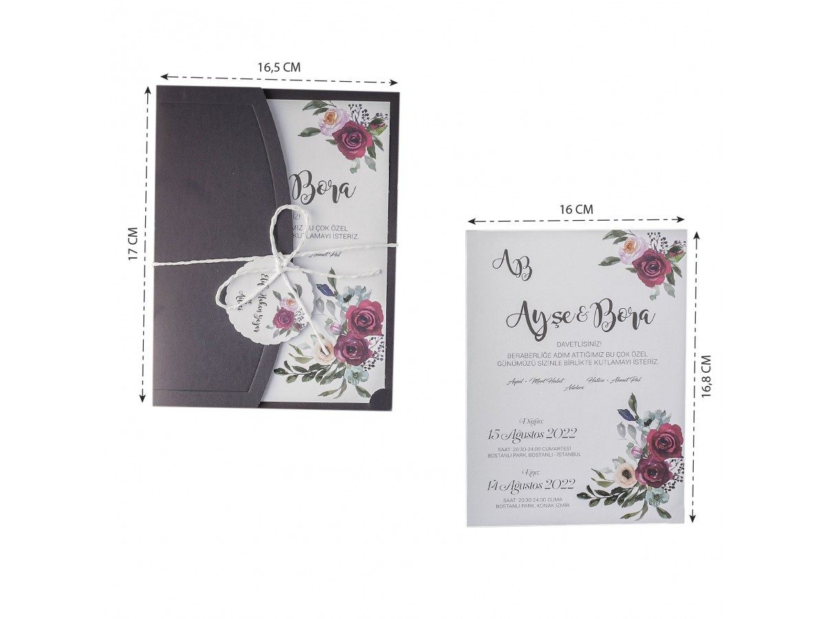 Davetiyenin boyutları son resimde belirtilmiştir.